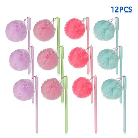 Amazon Com 12pcs Cute Plush Fluffy Gel Pen Black Ink Cool