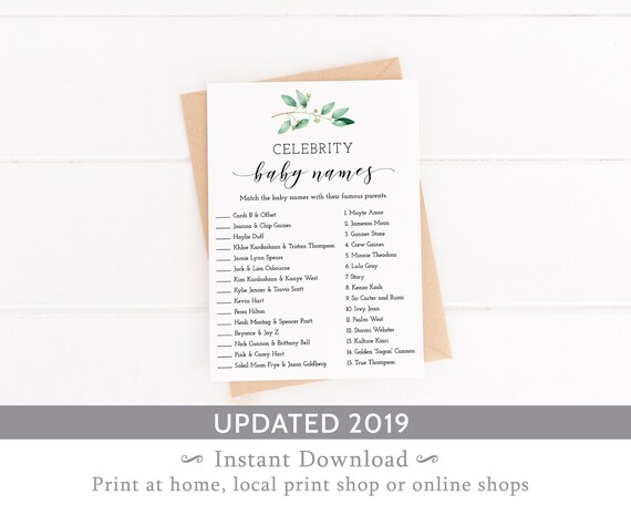 Celebrity Baby Names Greenery Baby Shower Game Printable