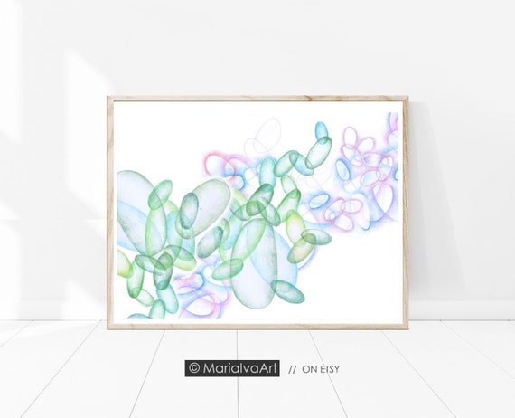 Abstract Color Pencil Drawing Blue Green And Lilac Ovals Printable Art For Home Decor Digital File For Self Print