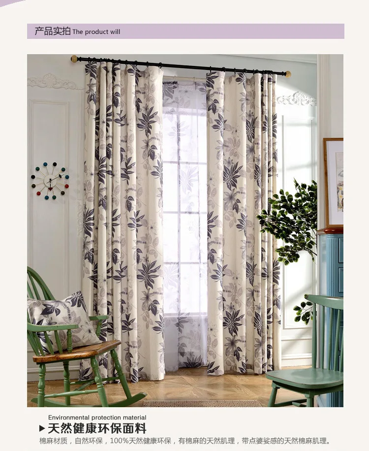 2018 Cotton Curtain Leaves Printed Shading Fabric Curtains