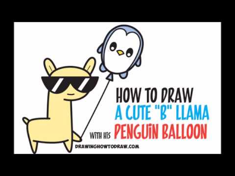 How To Draw A Llama With Sunglasses Penguin Balloon Kawaii Easy Step By Step Drawing