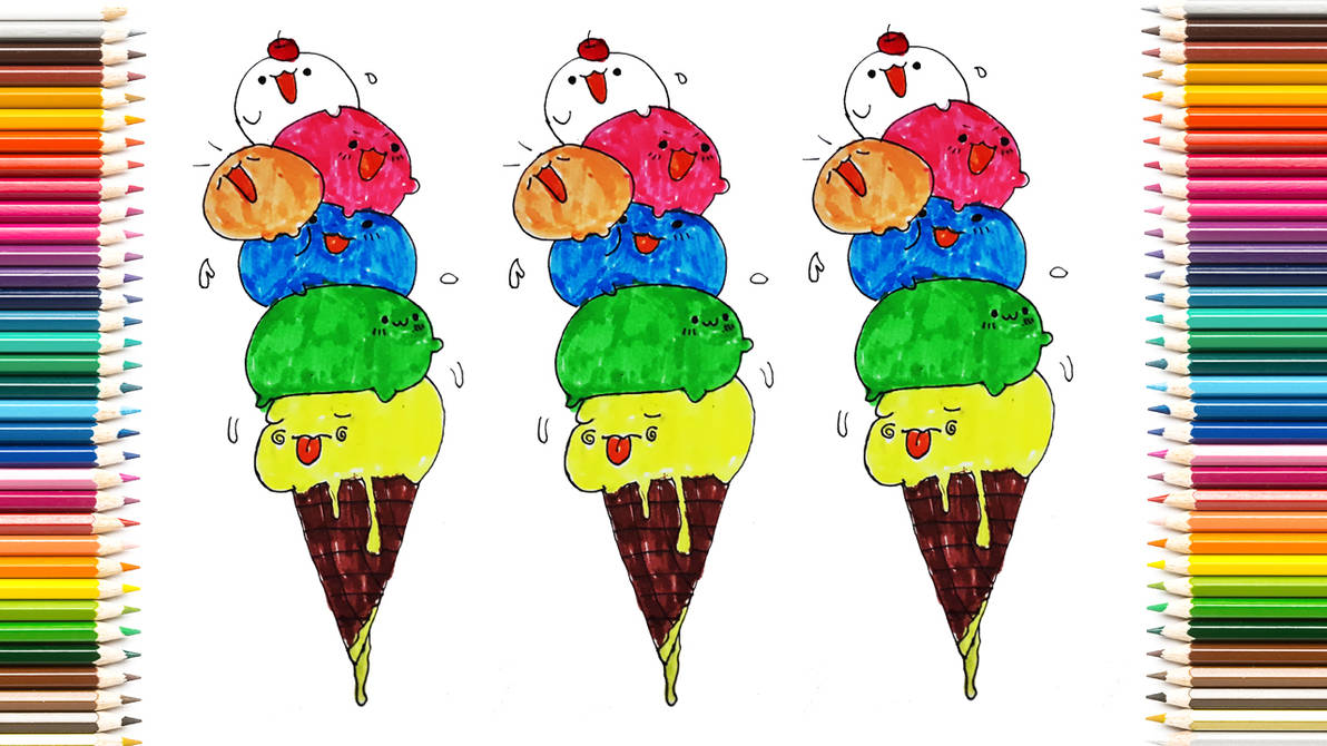 How To Draw Cute Kawaii Animals Stacked In Ice Cream Cone