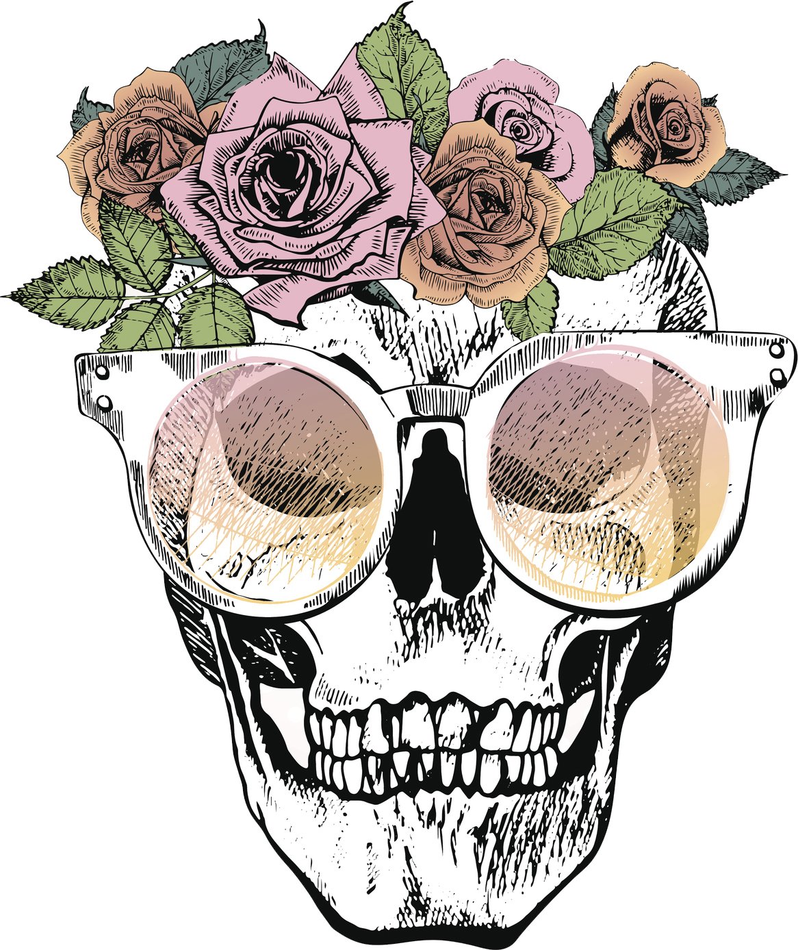 Divine Designs Happy Cute Girly Rose Floral Skull Drawing Vinyl Decal Sticker 4 Tall