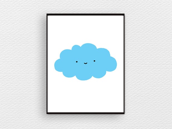 Cute Cloud Art Print Blue Cloud Drawing Nursery Wall Decor Nursery Drawing Cloud Art Print Baby Room Decor Kids Room Wall Art Cartoon