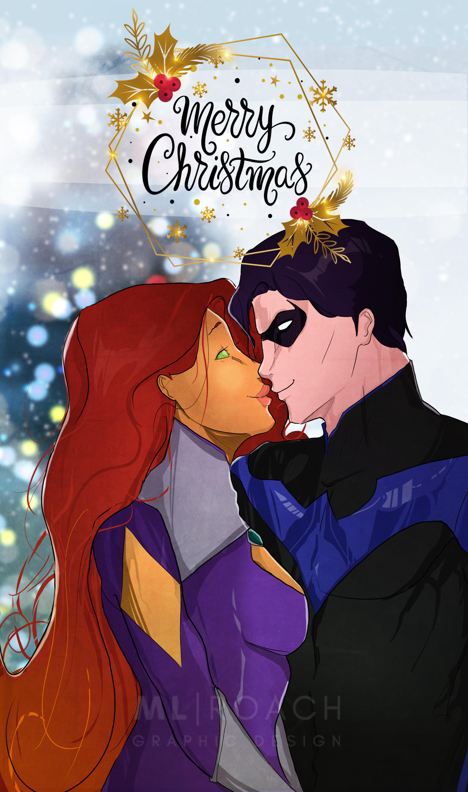 Nightwing Starfire Merry Christmas By Kittycakez On