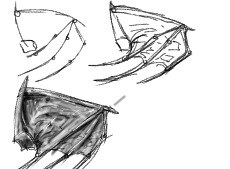 Dragon wings drawing folded.