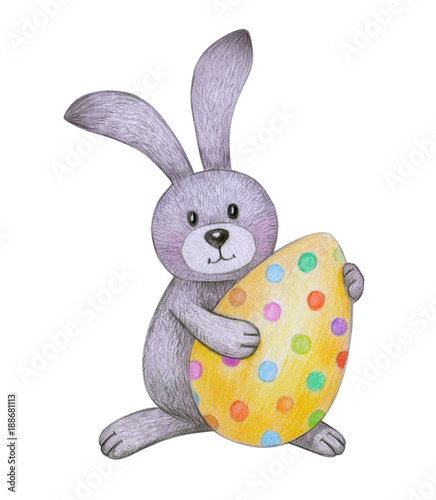 Drawing Cute Easter Bunny Holding Egg Spring Party Stock